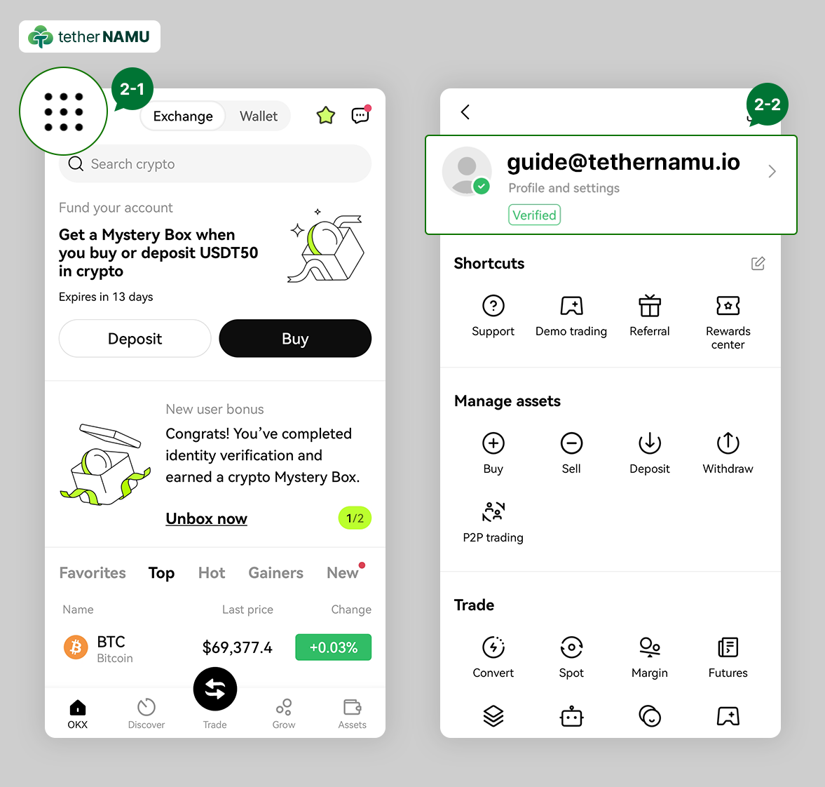 1. OKX 어플에 가입한 계정을 로그인해주세요.